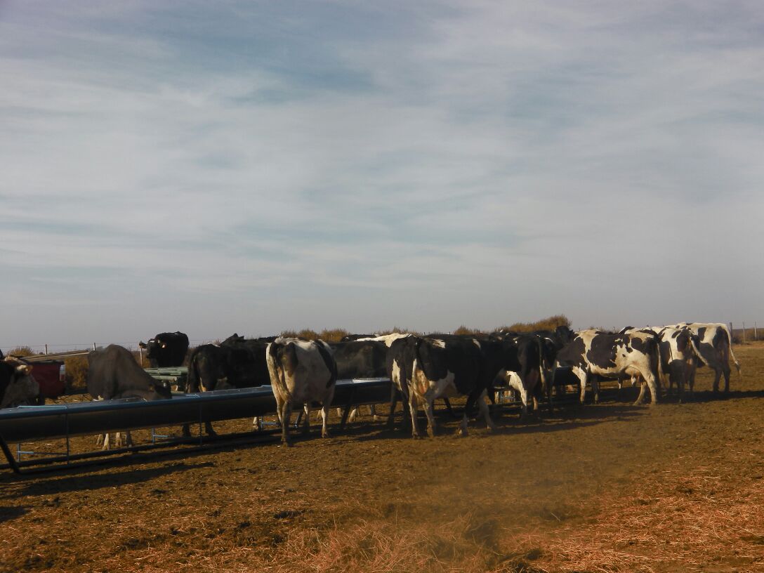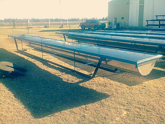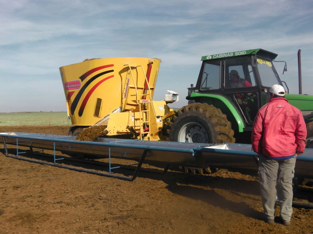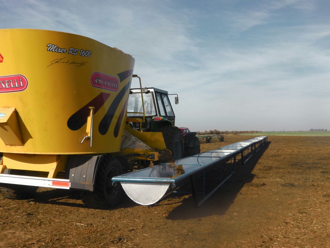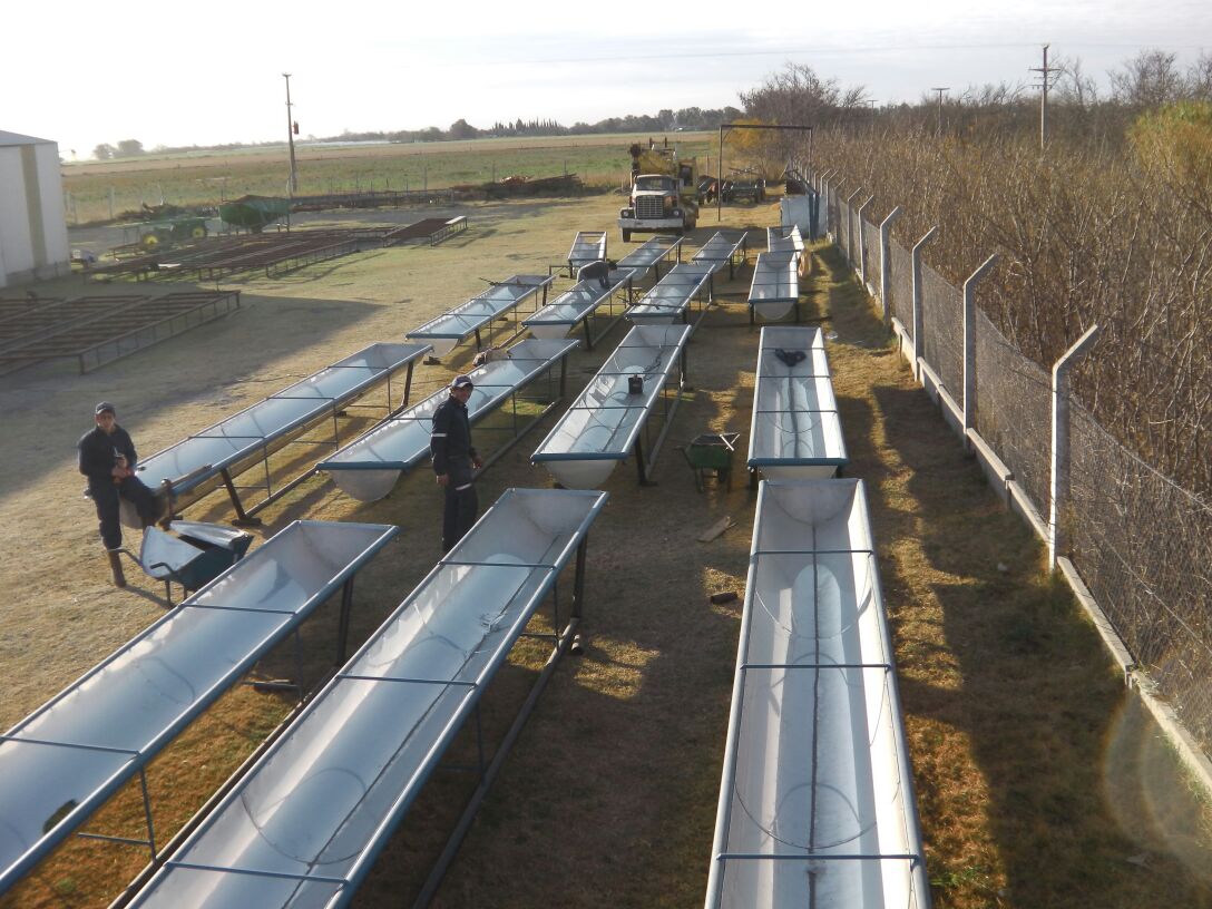 9 Mts. de largo X 1 Mts. de ancho. Con una altura de 0,70 Mts. También se cuenta con un Comedero para la recria, con una altura especial de 0,50 Mts.